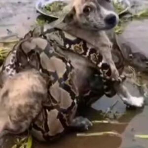 In a daring feat, a brave individual rescued a helpless dog from the clutches of an aggressive python. The dramatic incident unfolded as the python coiled around…