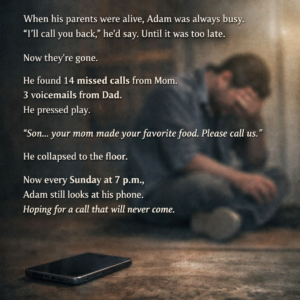 When his parents were alive, Adam was always busy.Busy with work. Busy with friends. Busy with tomorrow. His mother called every Sunday at 7 p.m.Sometimes he answered.Most…